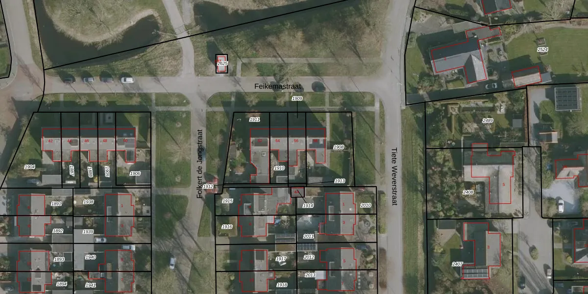 Feikemastraat 56 is gelegen op kadastraal perceel FNK00C1909. Deze kadastrale aanduiding is uniek en wordt gebruikt door het Kadaster om eigendomsrechten en andere zakelijke rechten vast te leggen. Het perceel maakt onderdeel uit van de kadastrale gemeente Franeker.