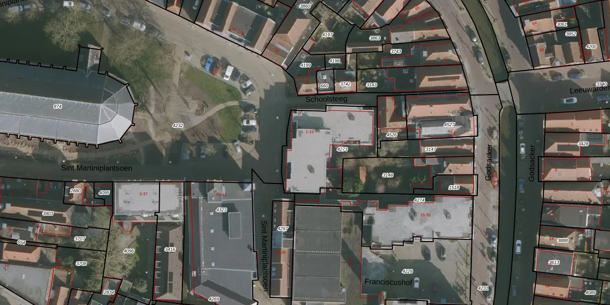 Het adres ligt op het perceel FNK00-A-4273, dat zich in de kadastrale gemeente Franeker bevindt. Het perceel is kleiner dan gemiddeld in Franeker. Het perceel is 700 m² groot, terwijl het gemiddelde ligt op 2402,5 m². Het kleinste perceel in de kadastrale gemeente is 0 m² groot. De grootste perceeloppervlakte is 30,5 ha. Op het perceel liggen in totaal 15 adressen. In de Basisregistratie Kadaster (BRK) werden de grenzen van het perceel geregistreerd op 30-10-2012.