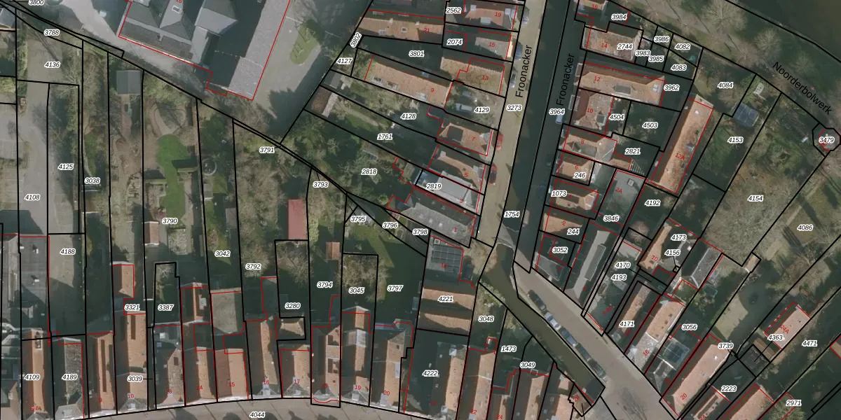 Het perceel waarop Froonacker 1 staat heeft een oppervlakte van 525 m². Dit is een groot perceel. De perceeloppervlakte wordt geregistreerd door het Kadaster. Gedetailleerde informatie over de maten van dit perceel kunt u vinden in het rapport Kadastrale kaart met maatvoering van Froonacker 1.
