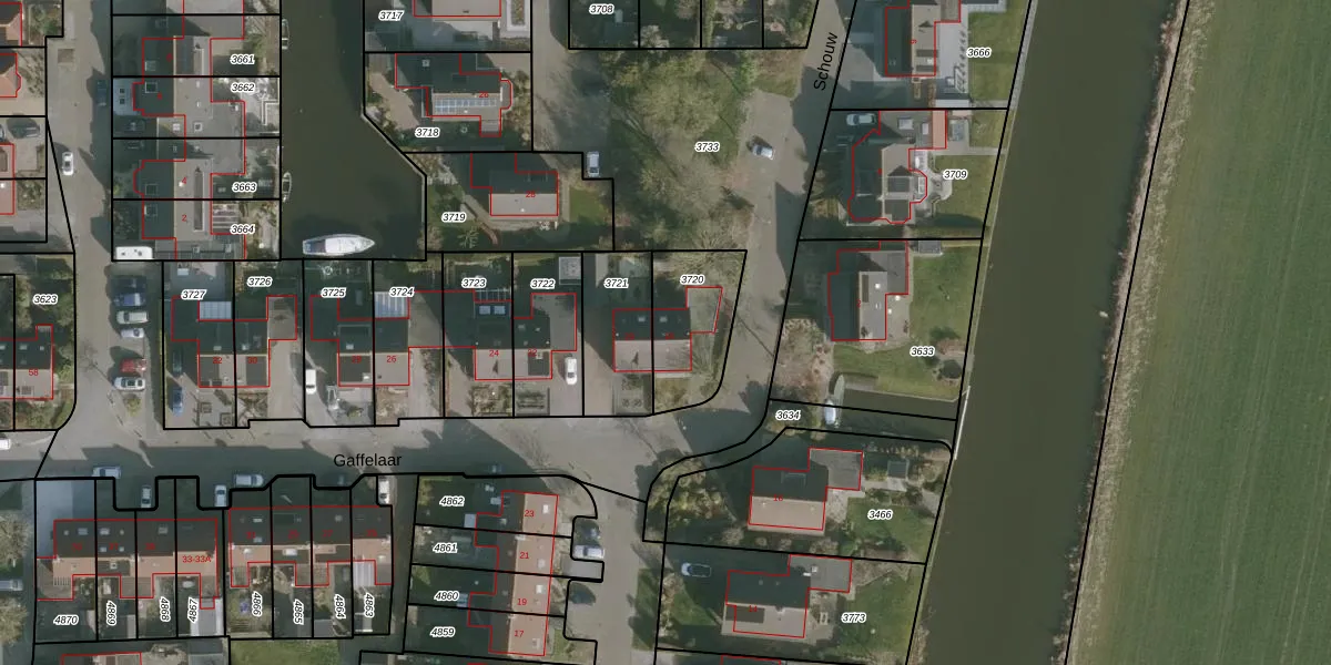 Gaffelaar 18 is gelegen op kadastraal perceel FNK00B3720. Deze kadastrale aanduiding is uniek en wordt gebruikt door het Kadaster om eigendomsrechten en andere zakelijke rechten vast te leggen. Het perceel maakt onderdeel uit van de kadastrale gemeente Franeker.