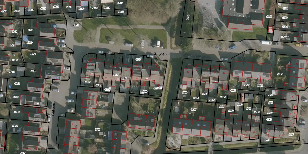 Het perceel waarop Galjoen 26 staat heeft een oppervlakte van 221 m². Dit is een middelgroot perceel. De perceeloppervlakte wordt geregistreerd door het Kadaster. Gedetailleerde informatie over de maten van dit perceel kunt u vinden in het rapport Kadastrale kaart met maatvoering van Galjoen 26.
