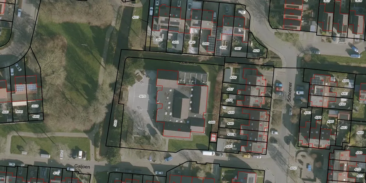 Gebruik de zoekbalk of klik op een perceel voor informatie over de adressen binnen dit perceel.