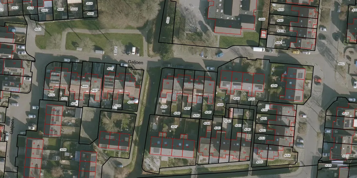 Galjoen 30 is gelegen op kadastraal perceel FNK00B4048. Deze kadastrale aanduiding is uniek en wordt gebruikt door het Kadaster om eigendomsrechten en andere zakelijke rechten vast te leggen. Het perceel maakt onderdeel uit van de kadastrale gemeente Franeker.