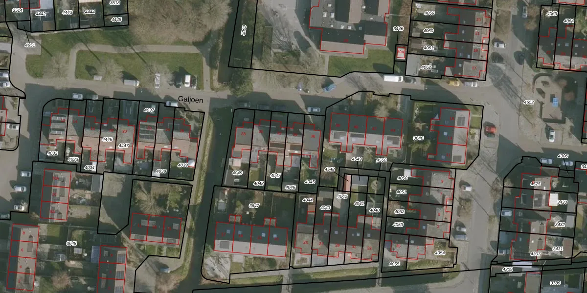 Het perceel waarop Galjoen 34 staat heeft een oppervlakte van 156 m². Dit is een middelgroot perceel. De perceeloppervlakte wordt geregistreerd door het Kadaster. Gedetailleerde informatie over de maten van dit perceel kunt u vinden in het rapport Kadastrale kaart met maatvoering van Galjoen 34.