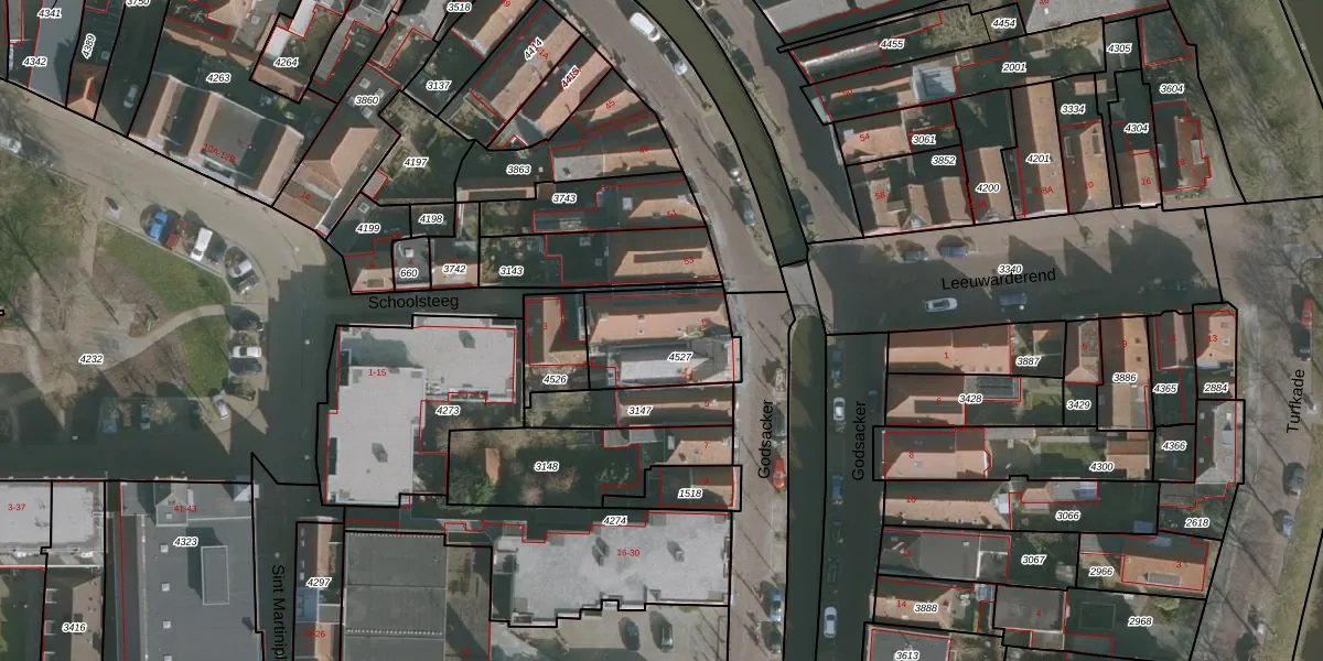 Het adres is gelegen op perceel 4527 in de sectie A en de kadastrale gemeente Franeker. De kadastrale aanduiding is aldus FNK00-A-4527. Het perceel is 313 m² groot. Dat is kleiner dan de gemiddelde perceeloppervlakte in Franeker, dat op 2404,51 m² ligt. De grootste perceeloppervlakte in de kadastrale gemeente is 30,5 ha. De kleinste oppervlakte bedraagt 0 m². Op het perceel zijn 5 adressen aanwezig. In de Basisregistratie Kadaster (BRK) werden de grenzen van het perceel geregistreerd op 12-10-2023.