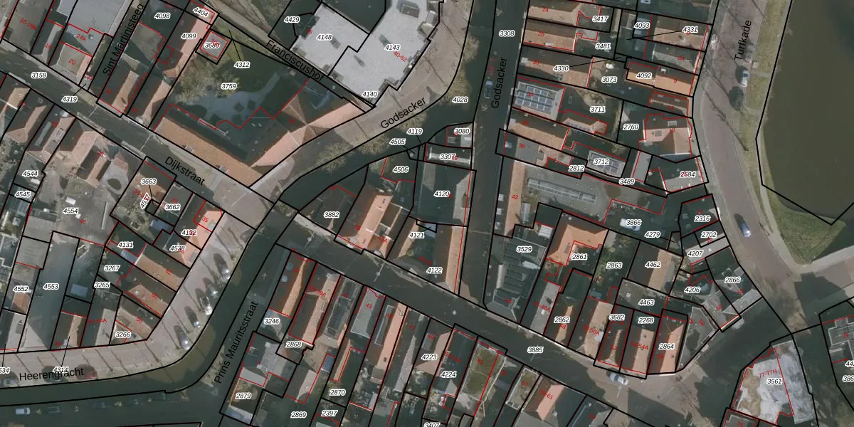 Gebruik de zoekbalk of klik op een perceel voor informatie over de adressen binnen dit perceel.