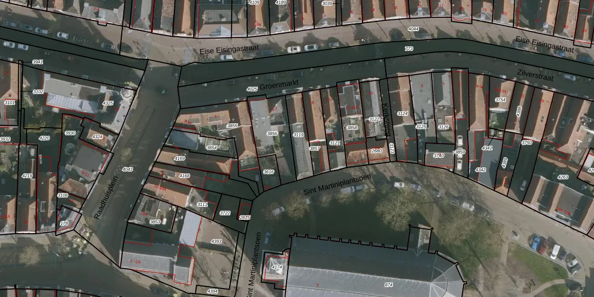Het perceel waarop Groenmarkt 5-A staat heeft een oppervlakte van 173 m². Dit is een middelgroot perceel. De perceeloppervlakte wordt geregistreerd door het Kadaster. Gedetailleerde informatie over de maten van dit perceel kunt u vinden in het rapport Kadastrale kaart met maatvoering van Groenmarkt 5-A.