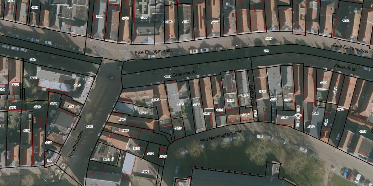 Het perceel waarop Groenmarkt 7 staat heeft een oppervlakte van 303 m². Dit is een groot perceel. De perceeloppervlakte wordt geregistreerd door het Kadaster. Gedetailleerde informatie over de maten van dit perceel kunt u vinden in het rapport Kadastrale kaart met maatvoering van Groenmarkt 7.