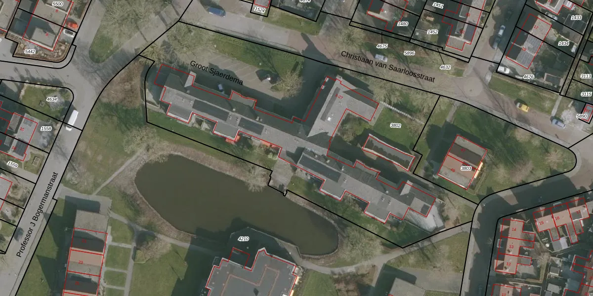 Het perceel waarop Groot Sjaerdema 9 staat heeft een oppervlakte van 4440 m². Dit is een zeer groot perceel. De perceeloppervlakte wordt geregistreerd door het Kadaster. Gedetailleerde informatie over de maten van dit perceel kunt u vinden in het rapport Kadastrale kaart met maatvoering van Groot Sjaerdema 9.