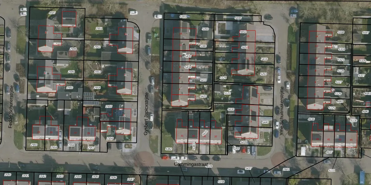 Het perceel waarop Gysbert Japicxstrjitte 4 staat heeft een oppervlakte van 370 m². Dit is een groot perceel. De perceeloppervlakte wordt geregistreerd door het Kadaster. Gedetailleerde informatie over de maten van dit perceel kunt u vinden in het rapport Kadastrale kaart met maatvoering van Gysbert Japicxstrjitte 4.