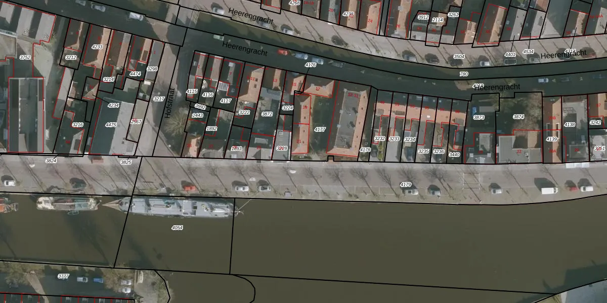 Het perceel waarop Heerengracht 21 staat heeft een oppervlakte van 617 m². Dit is een groot perceel. De perceeloppervlakte wordt geregistreerd door het Kadaster. Gedetailleerde informatie over de maten van dit perceel kunt u vinden in het rapport Kadastrale kaart met maatvoering van Heerengracht 21.