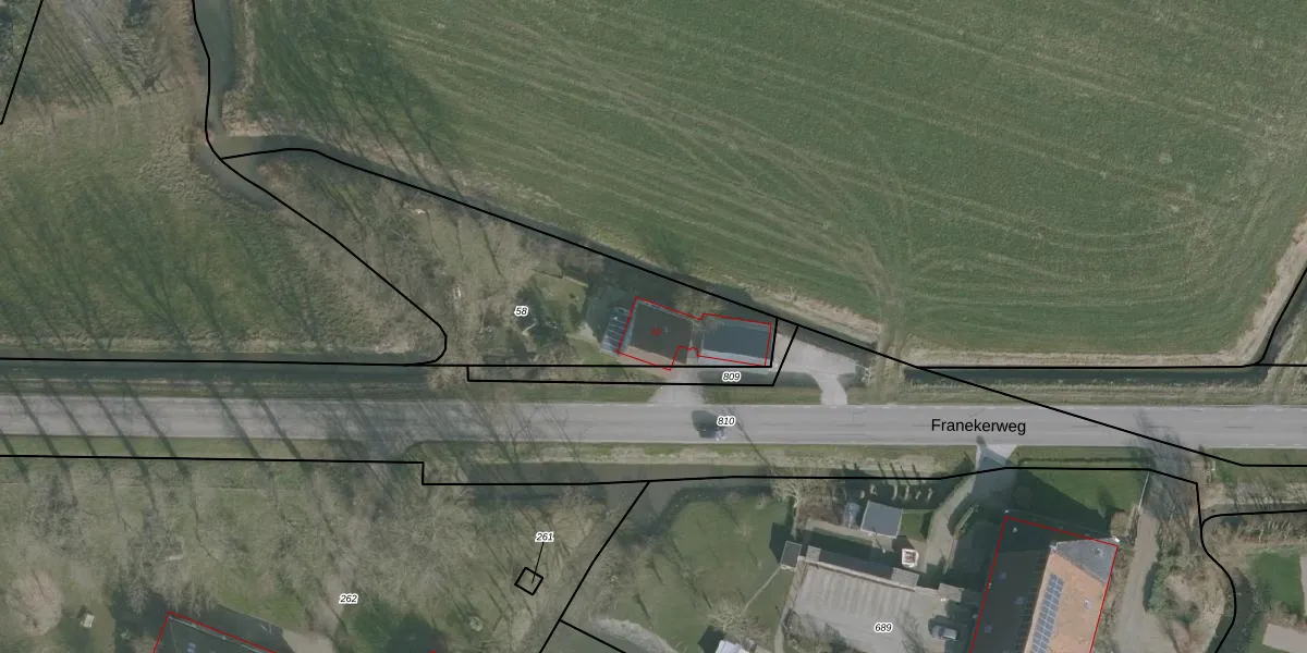 Het adres ligt op het perceel FNK00-E-58, dat zich in de kadastrale gemeente Franeker bevindt. De gemiddelde perceelgrootte in Franeker is 2404,51 m². Dit perceel is kleiner: de perceeloppervlakte bedraagt 1340 m². Het grootste perceel in de kadastrale gemeente is 30,5 ha. Het kleinste perceel heeft een oppervlakte van 0 m². Dit is het enige adres dat aanwezig is op het perceel. De huidige grenzen van het perceel zijn digitaal in de Basisregistratie Kadaster (BRK) geregistreerd op 19-01-2016.
