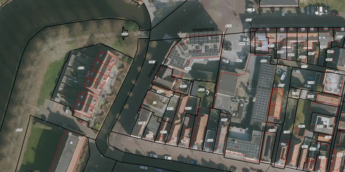 Gebruik de zoekbalk of klik op een perceel voor informatie over de adressen binnen dit perceel.