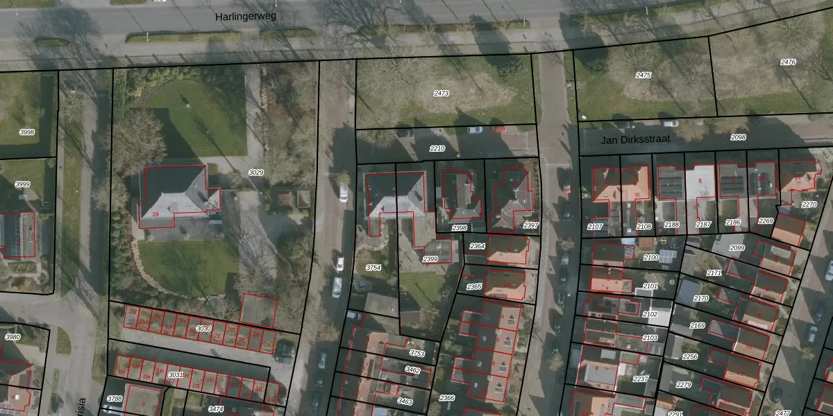 Jan Dirksstraat 2 is gelegen op kadastraal perceel FNK00D2399. Deze kadastrale aanduiding is uniek en wordt gebruikt door het Kadaster om eigendomsrechten en andere zakelijke rechten vast te leggen. Het perceel maakt onderdeel uit van de kadastrale gemeente Franeker.