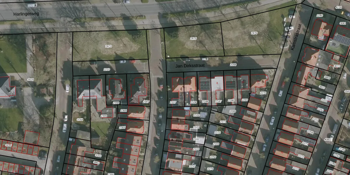 Het perceel waarop Jan Dirksstraat 5 staat heeft een oppervlakte van 195 m². Dit is een middelgroot perceel. De perceeloppervlakte wordt geregistreerd door het Kadaster. Gedetailleerde informatie over de maten van dit perceel kunt u vinden in het rapport Kadastrale kaart met maatvoering van Jan Dirksstraat 5.