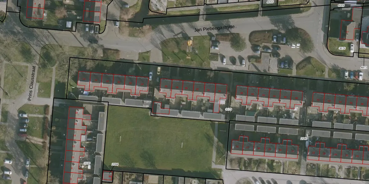 Het perceel waarop Jan Piebengastrjitte 30 staat heeft een oppervlakte van 4593 m². Dit is een zeer groot perceel. De perceeloppervlakte wordt geregistreerd door het Kadaster. Gedetailleerde informatie over de maten van dit perceel kunt u vinden in het rapport Kadastrale kaart met maatvoering van Jan Piebengastrjitte 30.