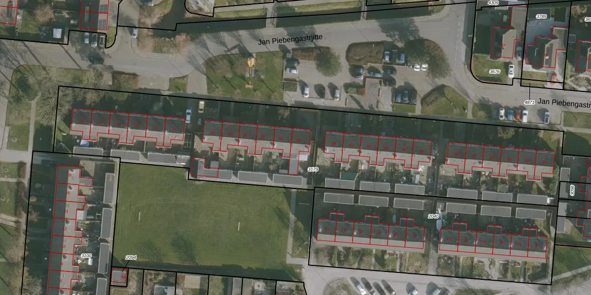 Het perceel waarop Jan Piebengastrjitte 36 staat heeft een oppervlakte van 4593 m². Dit is een zeer groot perceel. De perceeloppervlakte wordt geregistreerd door het Kadaster. Gedetailleerde informatie over de maten van dit perceel kunt u vinden in het rapport Kadastrale kaart met maatvoering van Jan Piebengastrjitte 36.