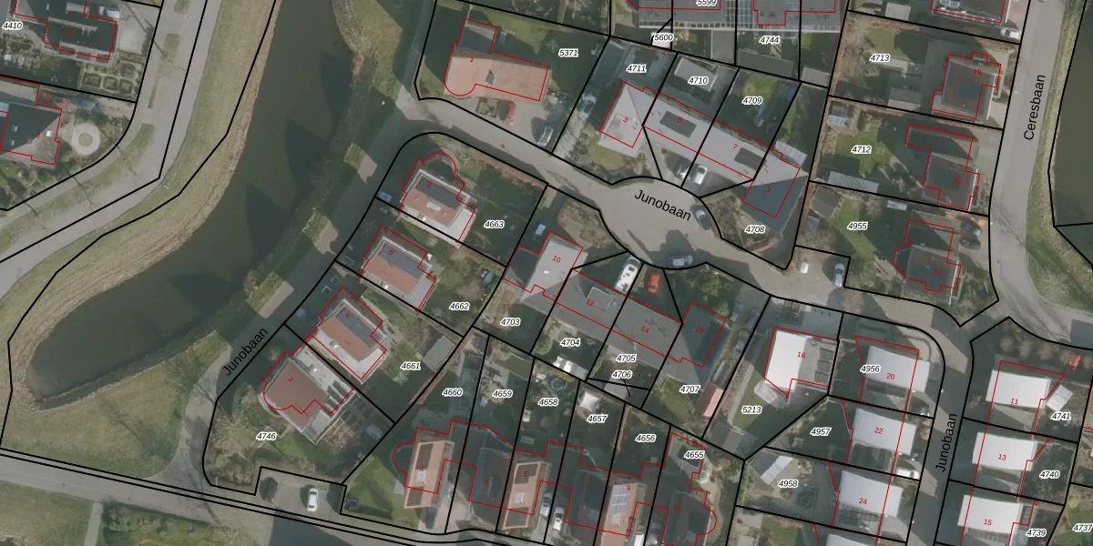 Het perceel waarop Junobaan 10 staat heeft een oppervlakte van 361 m². Dit is een groot perceel. De perceeloppervlakte wordt geregistreerd door het Kadaster. Gedetailleerde informatie over de maten van dit perceel kunt u vinden in het rapport Kadastrale kaart met maatvoering van Junobaan 10.