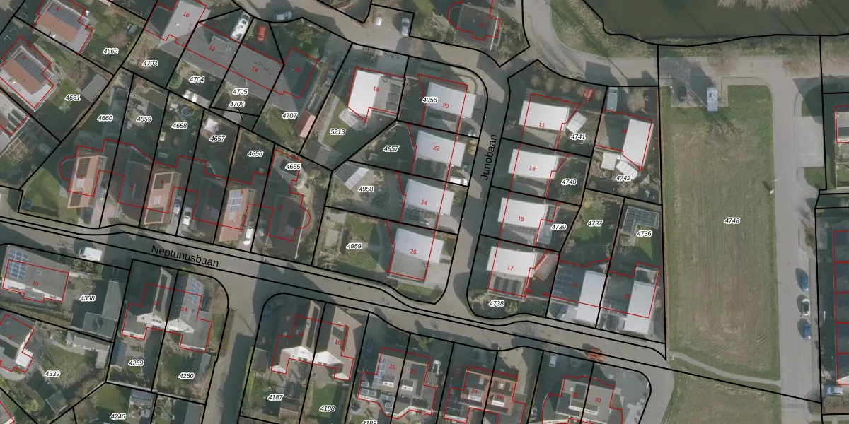 Junobaan 24 is gelegen op kadastraal perceel FNK00B4958. Deze kadastrale aanduiding is uniek en wordt gebruikt door het Kadaster om eigendomsrechten en andere zakelijke rechten vast te leggen. Het perceel maakt onderdeel uit van de kadastrale gemeente Franeker.