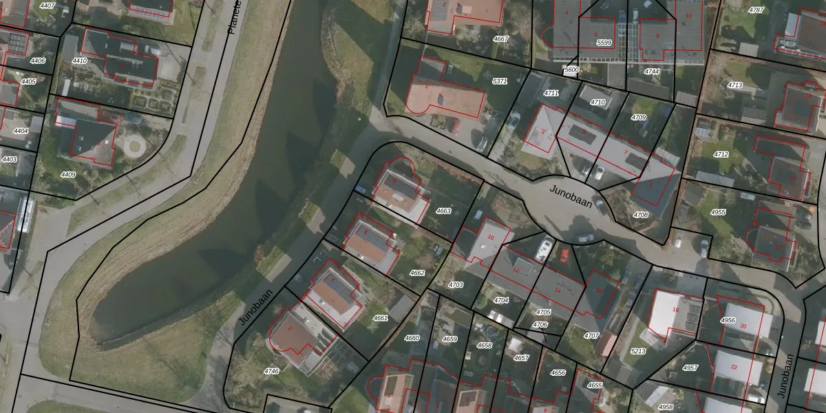 Het perceel waarop Junobaan 8 staat heeft een oppervlakte van 438 m². Dit is een groot perceel. De perceeloppervlakte wordt geregistreerd door het Kadaster. Gedetailleerde informatie over de maten van dit perceel kunt u vinden in het rapport Kadastrale kaart met maatvoering van Junobaan 8.