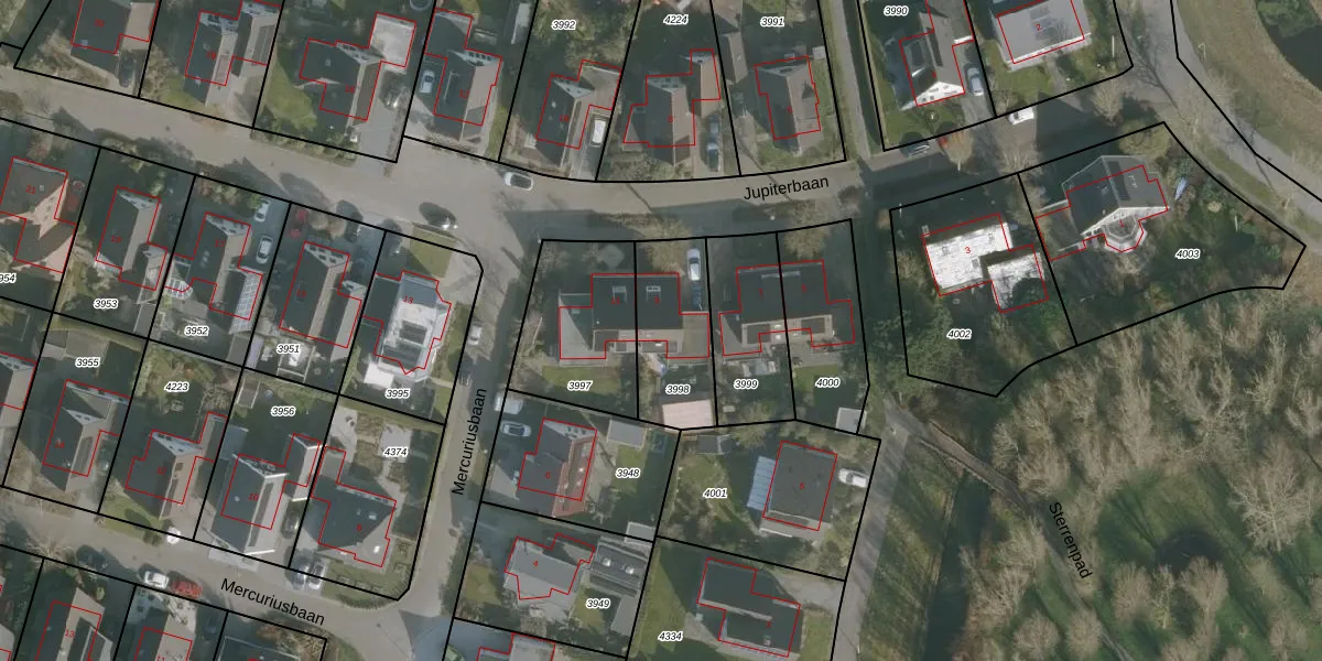 Gebruik de zoekbalk of klik op een perceel voor informatie over de adressen binnen dit perceel.