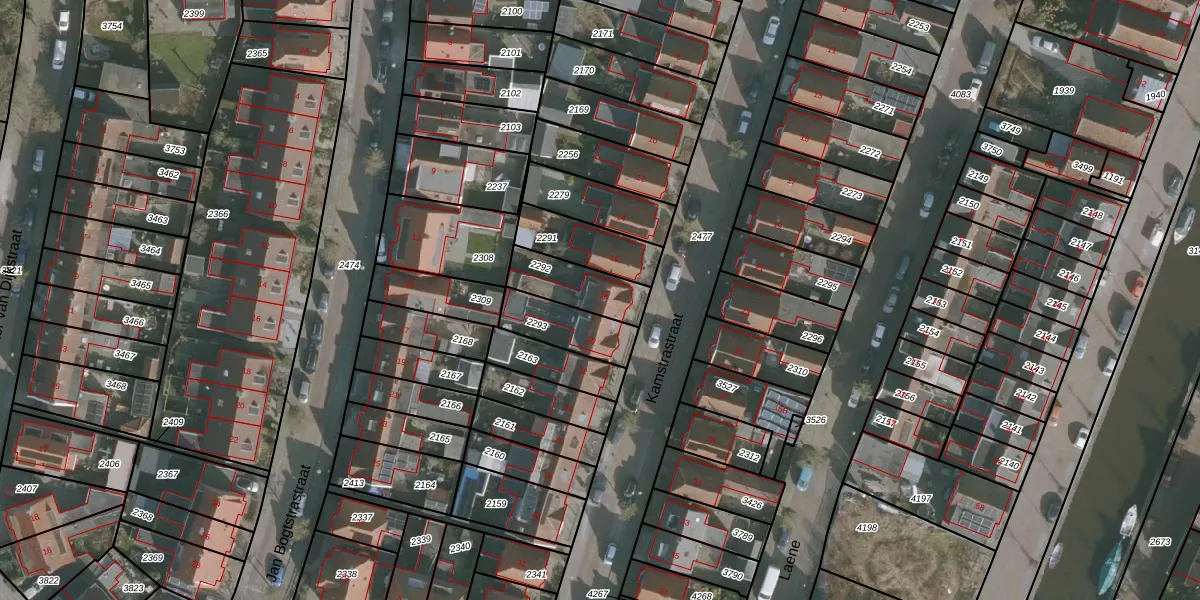 Gebruik de zoekbalk of klik op een perceel voor informatie over de adressen binnen dit perceel.