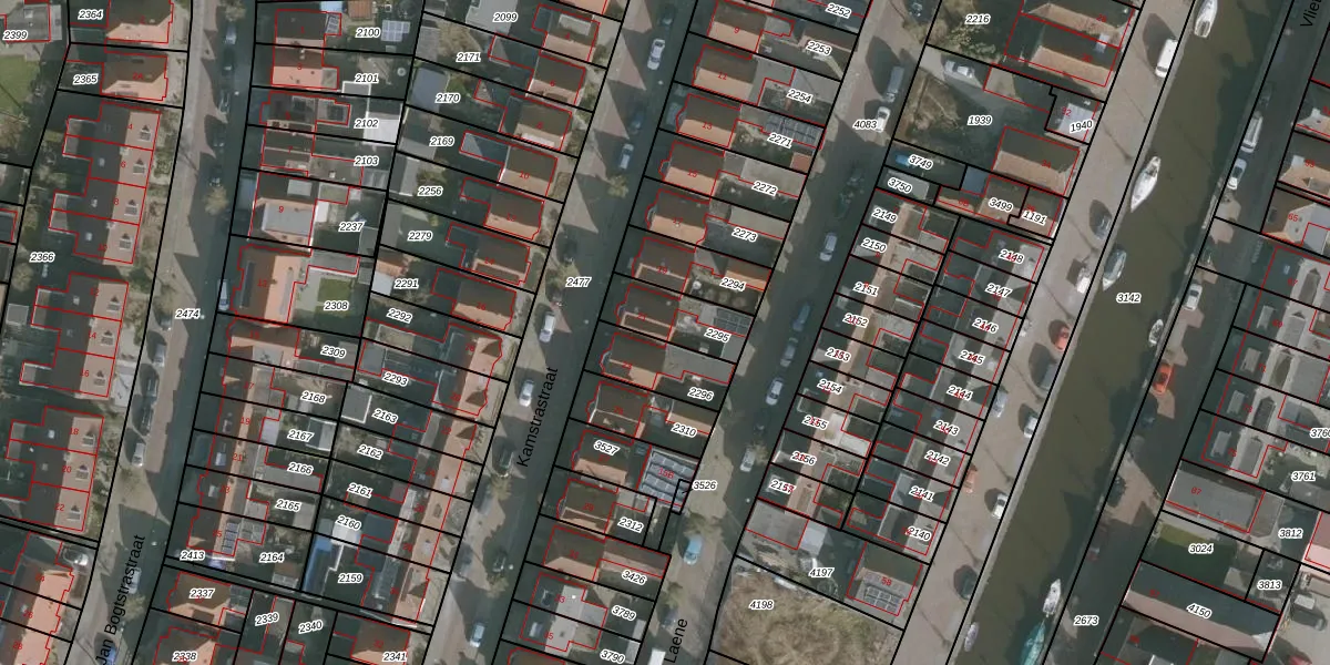 Gebruik de zoekbalk of klik op een perceel voor informatie over de adressen binnen dit perceel.