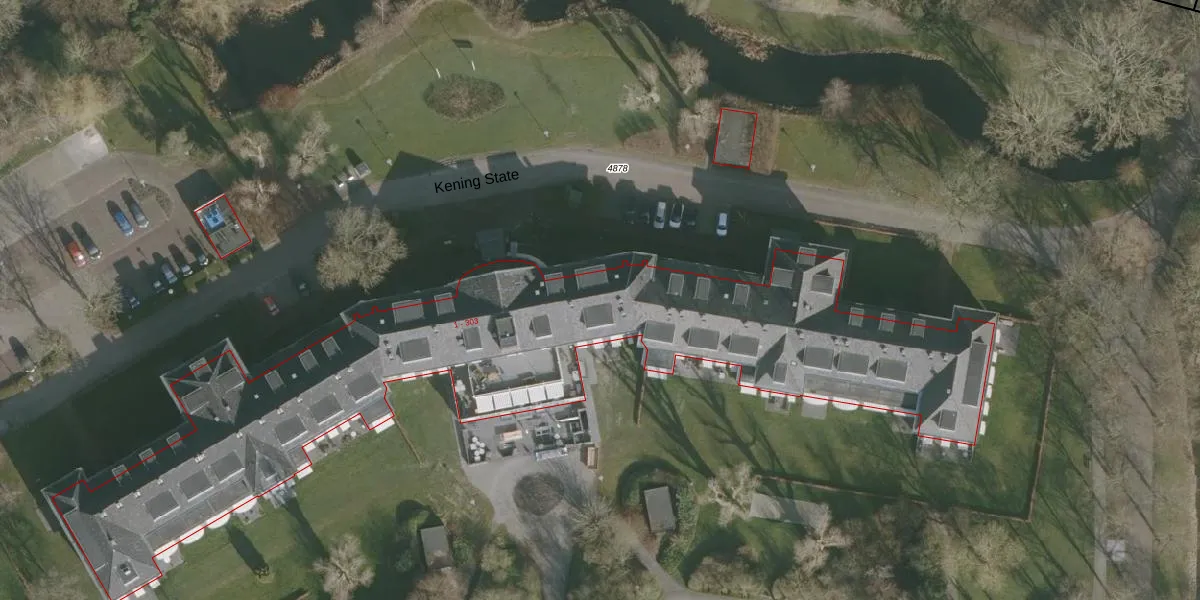 Het perceel waarop Kening State 102 staat heeft een oppervlakte van 3,3 ha. Dit is een zeer groot perceel. De perceeloppervlakte wordt geregistreerd door het Kadaster. Gedetailleerde informatie over de maten van dit perceel kunt u vinden in het rapport Kadastrale kaart met maatvoering van Kening State 102.