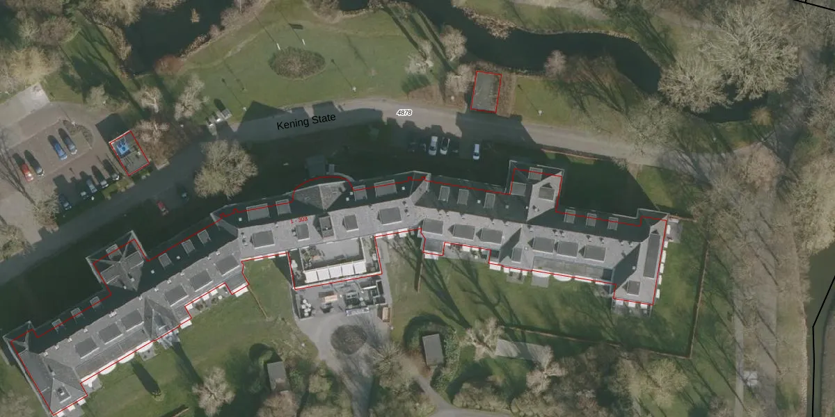 Het perceel waarop Kening State 104 staat heeft een oppervlakte van 3,3 ha. Dit is een zeer groot perceel. De perceeloppervlakte wordt geregistreerd door het Kadaster. Gedetailleerde informatie over de maten van dit perceel kunt u vinden in het rapport Kadastrale kaart met maatvoering van Kening State 104.
