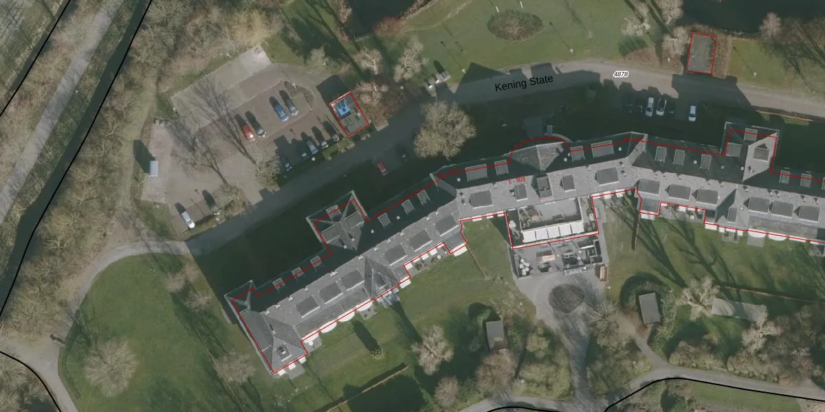 Het perceel waarop Kening State 35 staat heeft een oppervlakte van 3,3 ha. Dit is een zeer groot perceel. De perceeloppervlakte wordt geregistreerd door het Kadaster. Gedetailleerde informatie over de maten van dit perceel kunt u vinden in het rapport Kadastrale kaart met maatvoering van Kening State 35.