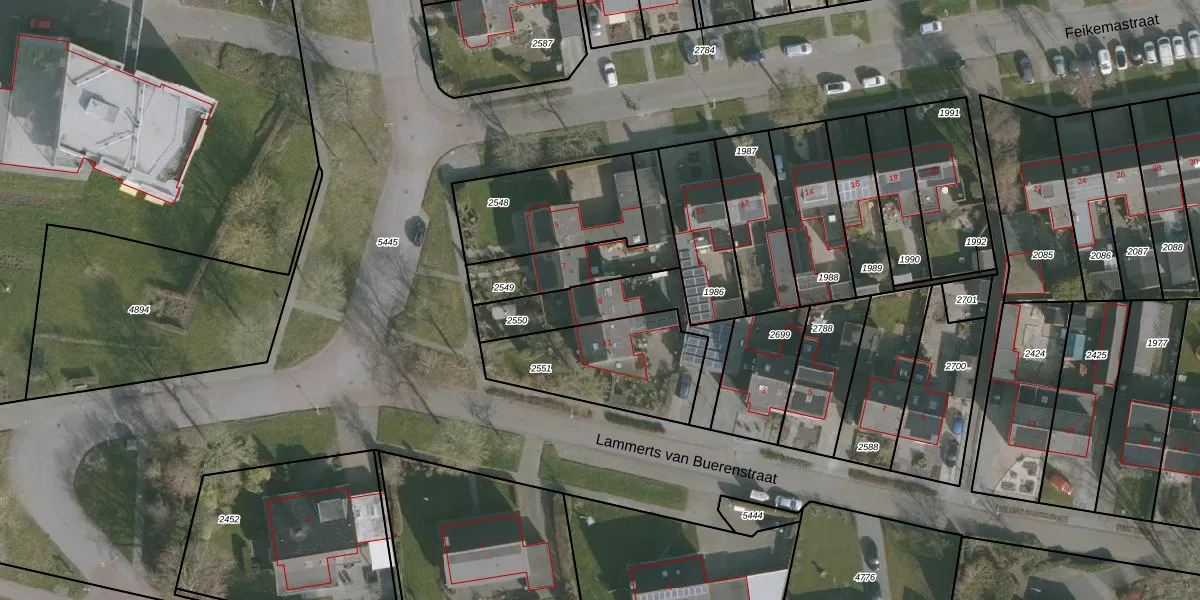 Gebruik de zoekbalk of klik op een perceel voor informatie over de adressen binnen dit perceel.