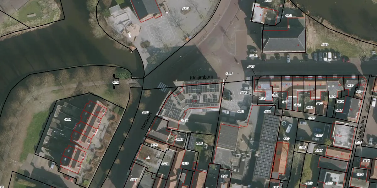 Het perceel waarop het adres ligt is FNK00-A-3956. De afkorting 'FNK00' staat voor kadastrale gemeente Franeker. Het perceel is kleiner dan gemiddeld in Franeker. Het perceel is 720 m² groot, terwijl het gemiddelde ligt op 2404,51 m². Het kleinste perceel in de kadastrale gemeente is 0 m² groot. De grootste perceeloppervlakte is 30,5 ha. Er zijn 10 adressen aanwezig op het perceel. De huidige grenzen van het perceel zijn digitaal in de Basisregistratie Kadaster (BRK) geregistreerd op 18-12-2009.