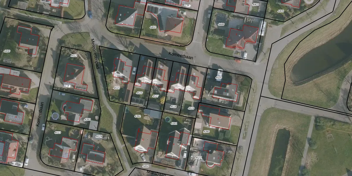 Komeetbaan 5 is gelegen op kadastraal perceel FNK00B4518. Deze kadastrale aanduiding is uniek en wordt gebruikt door het Kadaster om eigendomsrechten en andere zakelijke rechten vast te leggen. Het perceel maakt onderdeel uit van de kadastrale gemeente Franeker.