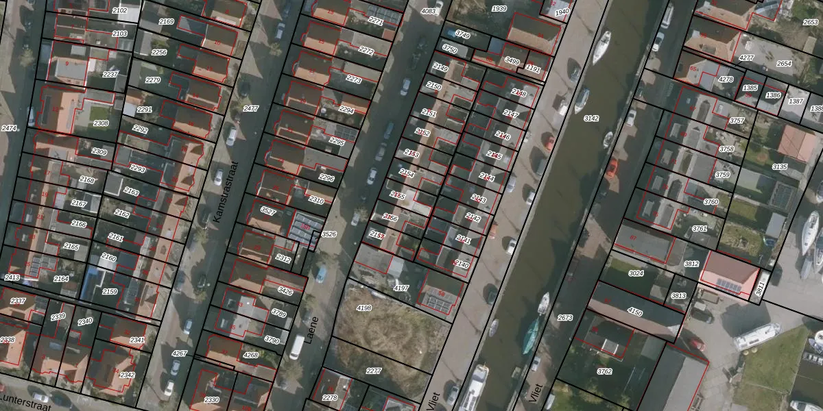 Laene 13 is gelegen op kadastraal perceel FNK00D2155. Deze kadastrale aanduiding is uniek en wordt gebruikt door het Kadaster om eigendomsrechten en andere zakelijke rechten vast te leggen. Het perceel maakt onderdeel uit van de kadastrale gemeente Franeker.