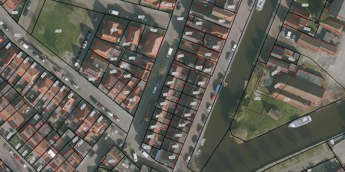 Gebruik de zoekbalk of klik op een perceel voor informatie over de adressen binnen dit perceel.