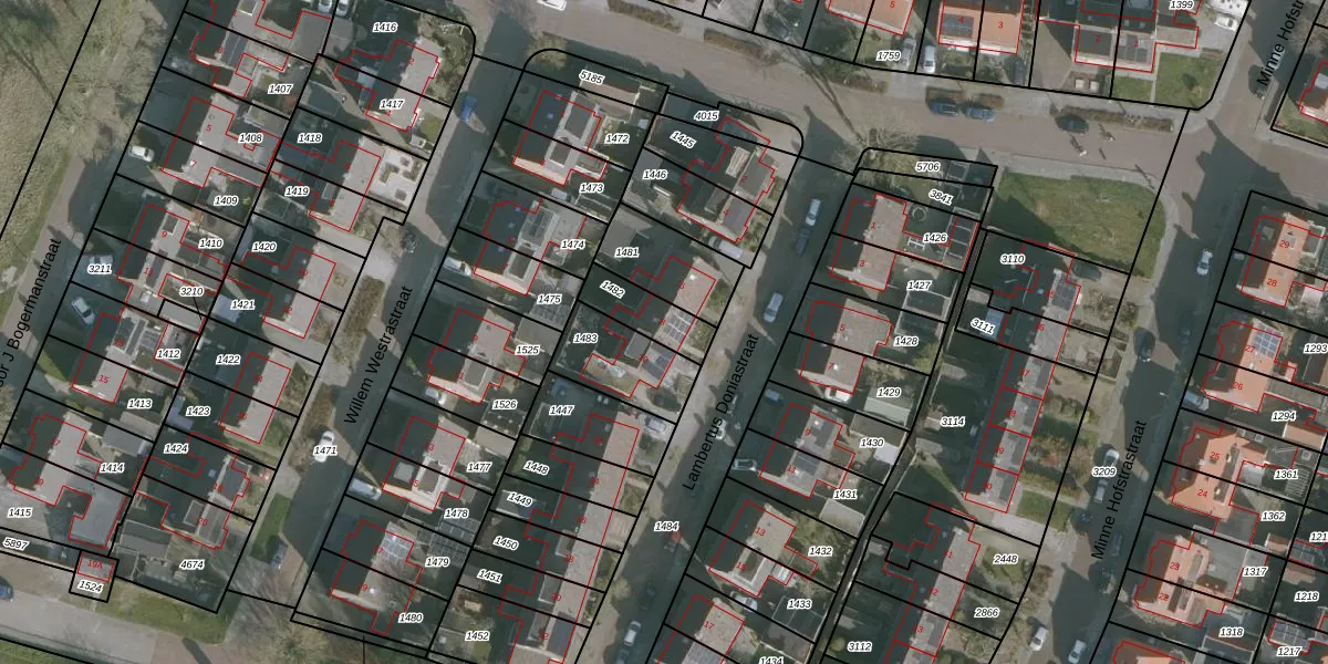 Gebruik de zoekbalk of klik op een perceel voor informatie over de adressen binnen dit perceel.
