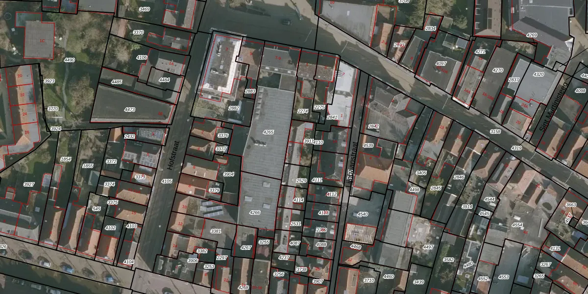 Gebruik de zoekbalk of klik op een perceel voor informatie over de adressen binnen dit perceel.