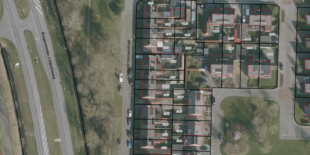 Linthorst Homanstraat 30 is gelegen op kadastraal perceel FNK00B4425. Deze kadastrale aanduiding is uniek en wordt gebruikt door het Kadaster om eigendomsrechten en andere zakelijke rechten vast te leggen. Het perceel maakt onderdeel uit van de kadastrale gemeente Franeker.