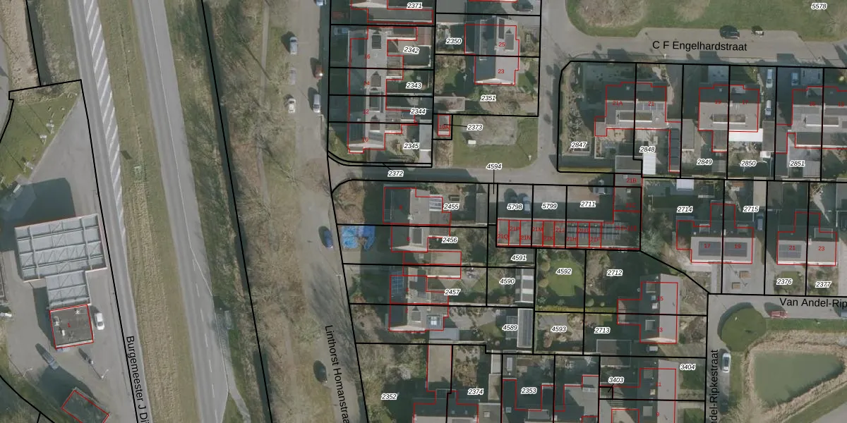 Linthorst Homanstraat 8 is gelegen op kadastraal perceel FNK00B2455. Deze kadastrale aanduiding is uniek en wordt gebruikt door het Kadaster om eigendomsrechten en andere zakelijke rechten vast te leggen. Het perceel maakt onderdeel uit van de kadastrale gemeente Franeker.