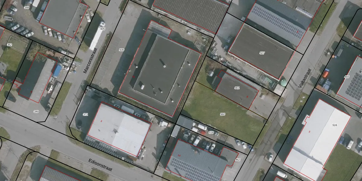 Gebruik de zoekbalk of klik op een perceel voor informatie over de adressen binnen dit perceel.