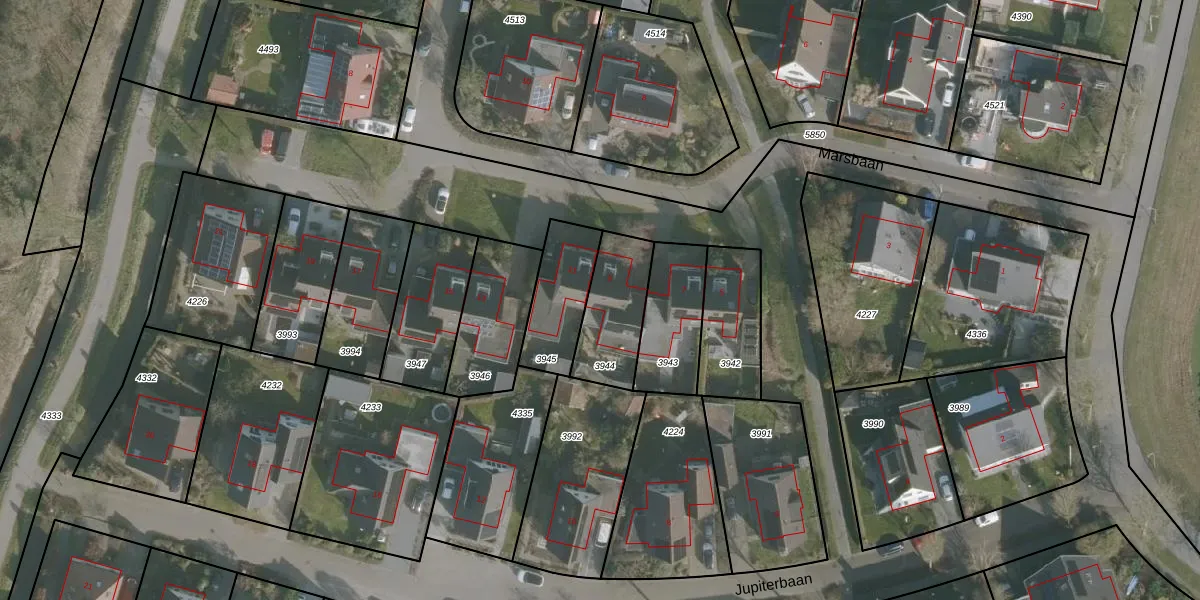 Het perceel waarop Marsbaan 9 staat heeft een oppervlakte van 245 m². Dit is een middelgroot perceel. De perceeloppervlakte wordt geregistreerd door het Kadaster. Gedetailleerde informatie over de maten van dit perceel kunt u vinden in het rapport Kadastrale kaart met maatvoering van Marsbaan 9.