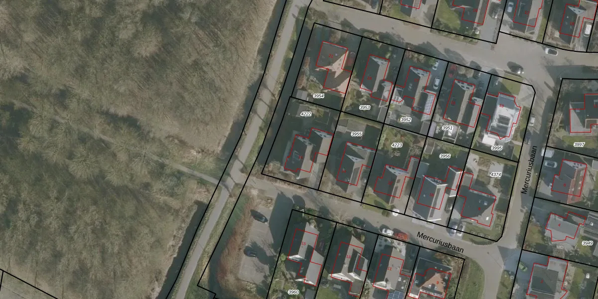 Het perceel waarop Mercuriusbaan 16 staat heeft een oppervlakte van 510 m². Dit is een groot perceel. De perceeloppervlakte wordt geregistreerd door het Kadaster. Gedetailleerde informatie over de maten van dit perceel kunt u vinden in het rapport Kadastrale kaart met maatvoering van Mercuriusbaan 16.