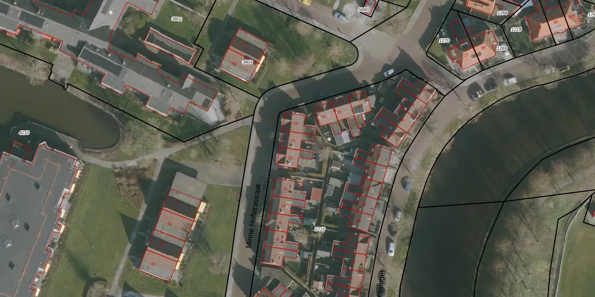 Minne Hofstrastraat 13 is gelegen op kadastraal perceel FNK00B2216. Deze kadastrale aanduiding is uniek en wordt gebruikt door het Kadaster om eigendomsrechten en andere zakelijke rechten vast te leggen. Het perceel maakt onderdeel uit van de kadastrale gemeente Franeker.