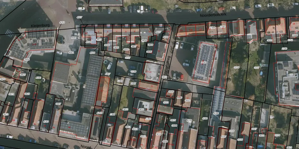 Het perceel waarop Molensteeg 19 staat heeft een oppervlakte van 375 m². Dit is een groot perceel. De perceeloppervlakte wordt geregistreerd door het Kadaster. Gedetailleerde informatie over de maten van dit perceel kunt u vinden in het rapport Kadastrale kaart met maatvoering van Molensteeg 19.
