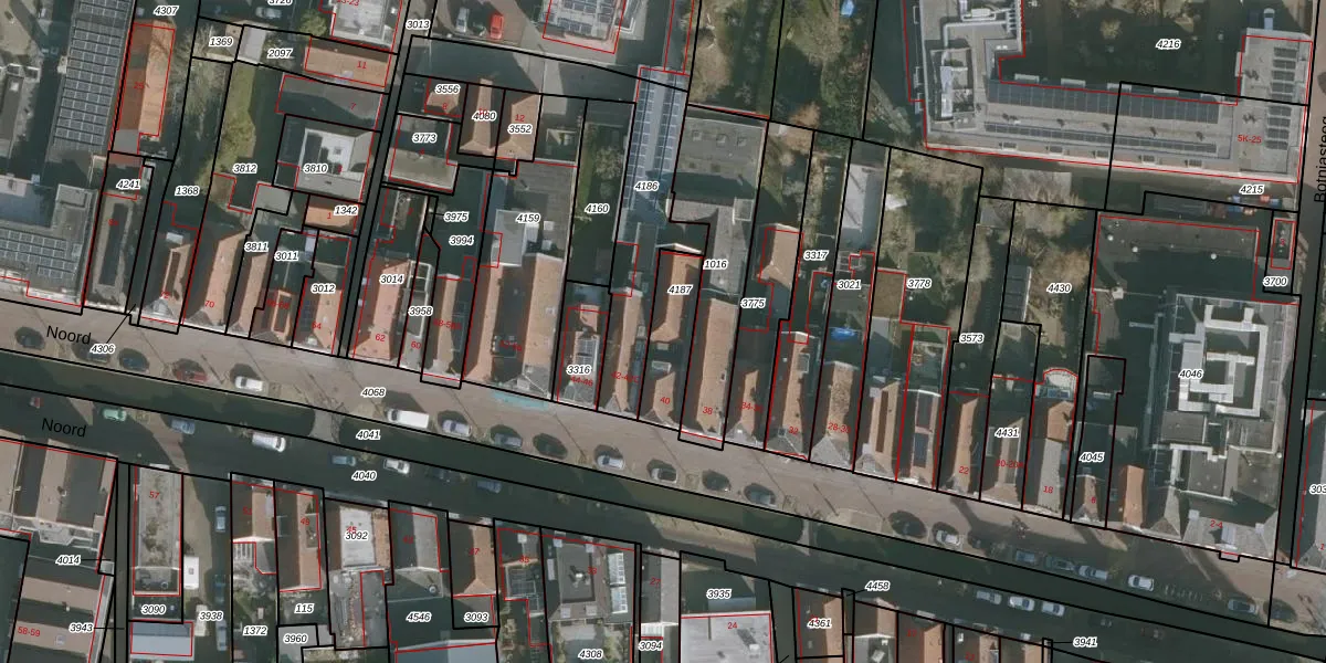 Gebruik de zoekbalk of klik op een perceel voor informatie over de adressen binnen dit perceel.