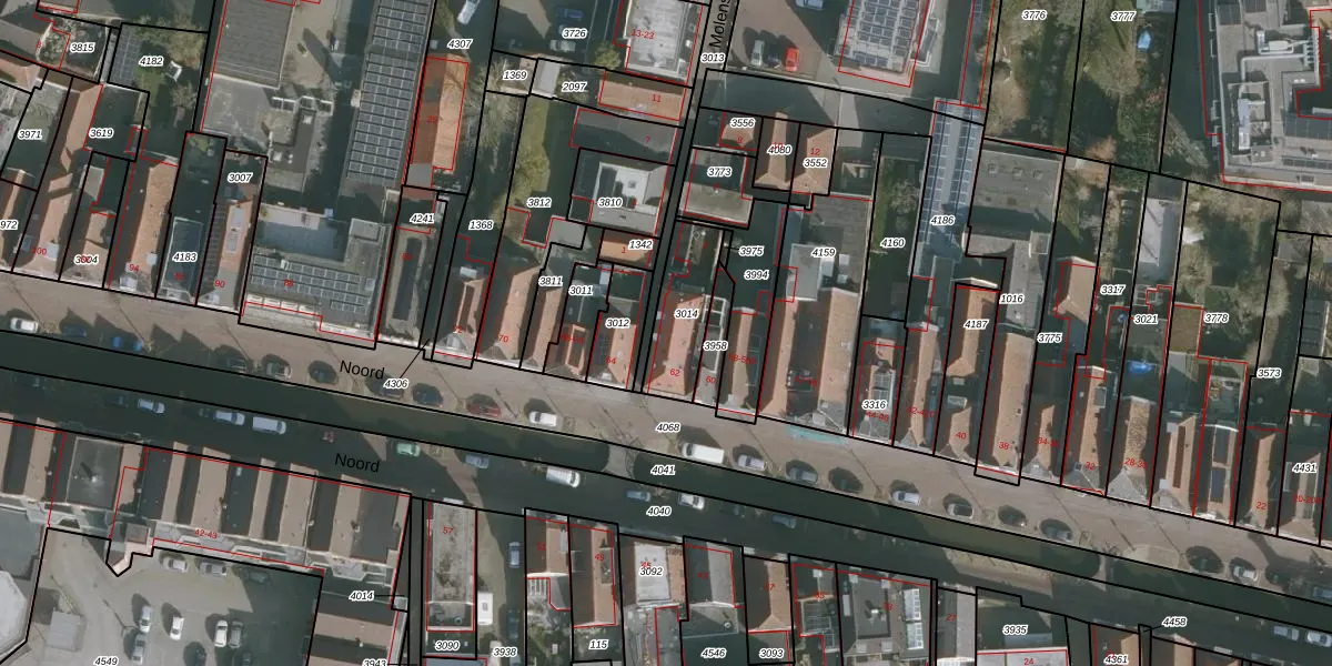 Het perceel waarop Noord 62 staat heeft een oppervlakte van 206 m². Dit is een middelgroot perceel. De perceeloppervlakte wordt geregistreerd door het Kadaster. Gedetailleerde informatie over de maten van dit perceel kunt u vinden in het rapport Kadastrale kaart met maatvoering van Noord 62.