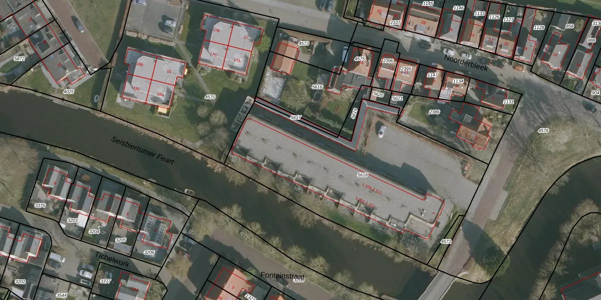 Noorderbleek 1-108 is gelegen op kadastraal perceel FNK00B5618. Deze kadastrale aanduiding is uniek en wordt gebruikt door het Kadaster om eigendomsrechten en andere zakelijke rechten vast te leggen. Het perceel maakt onderdeel uit van de kadastrale gemeente Franeker.