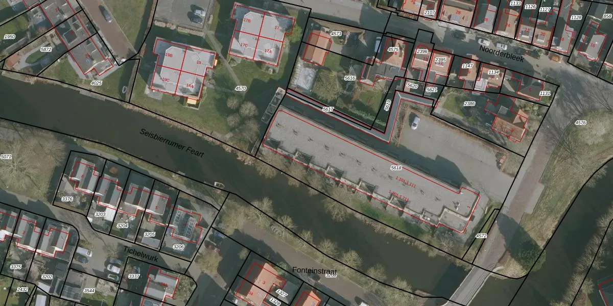 Het adres is gelegen op perceel 5618 in de sectie B en de kadastrale gemeente Franeker. De kadastrale aanduiding is aldus FNK00-B-5618. Het perceel is met 2615 m² relatief groot. Het gemiddelde ligt in de kadastrale gemeente Franeker op 2404,51 m². Het grootste perceel in de kadastrale gemeente is 30,5 ha. Het kleinste perceel heeft een oppervlakte van 0 m². Er zijn 23 adressen aanwezig op het perceel. De huidige grenzen van het perceel zijn digitaal in de Basisregistratie Kadaster (BRK) geregistreerd op 20-09-2018.