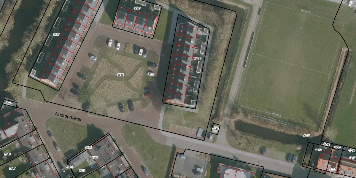 Het perceel waarop Noorderbleek 38 staat heeft een oppervlakte van 914 m². Dit is een groot perceel. De perceeloppervlakte wordt geregistreerd door het Kadaster. Gedetailleerde informatie over de maten van dit perceel kunt u vinden in het rapport Kadastrale kaart met maatvoering van Noorderbleek 38.