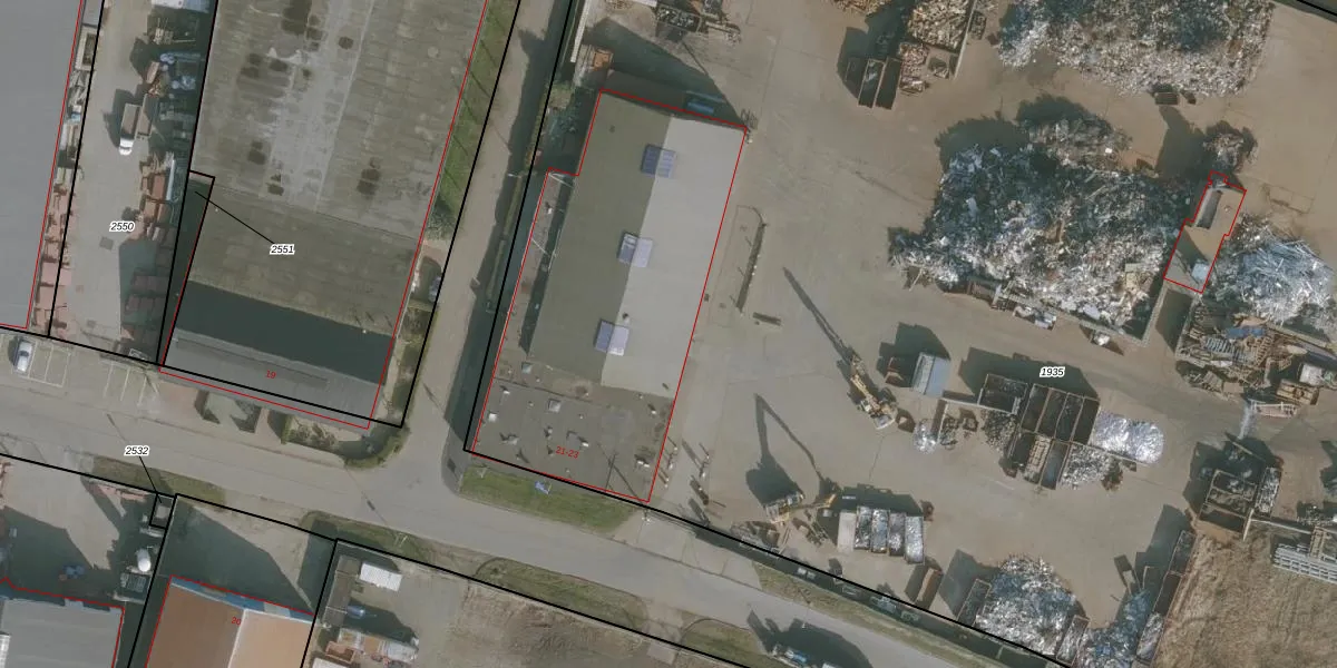 Het perceel waarop Oostelijke Industrieweg 21 staat heeft een oppervlakte van 1,5 ha. Dit is een zeer groot perceel. De perceeloppervlakte wordt geregistreerd door het Kadaster. Gedetailleerde informatie over de maten van dit perceel kunt u vinden in het rapport Kadastrale kaart met maatvoering van Oostelijke Industrieweg 21.
